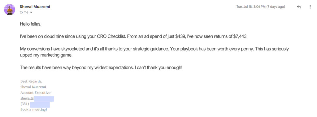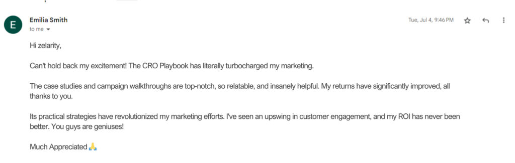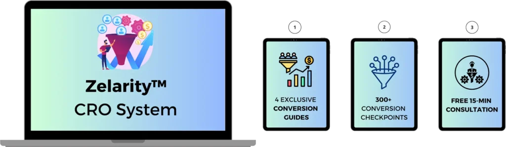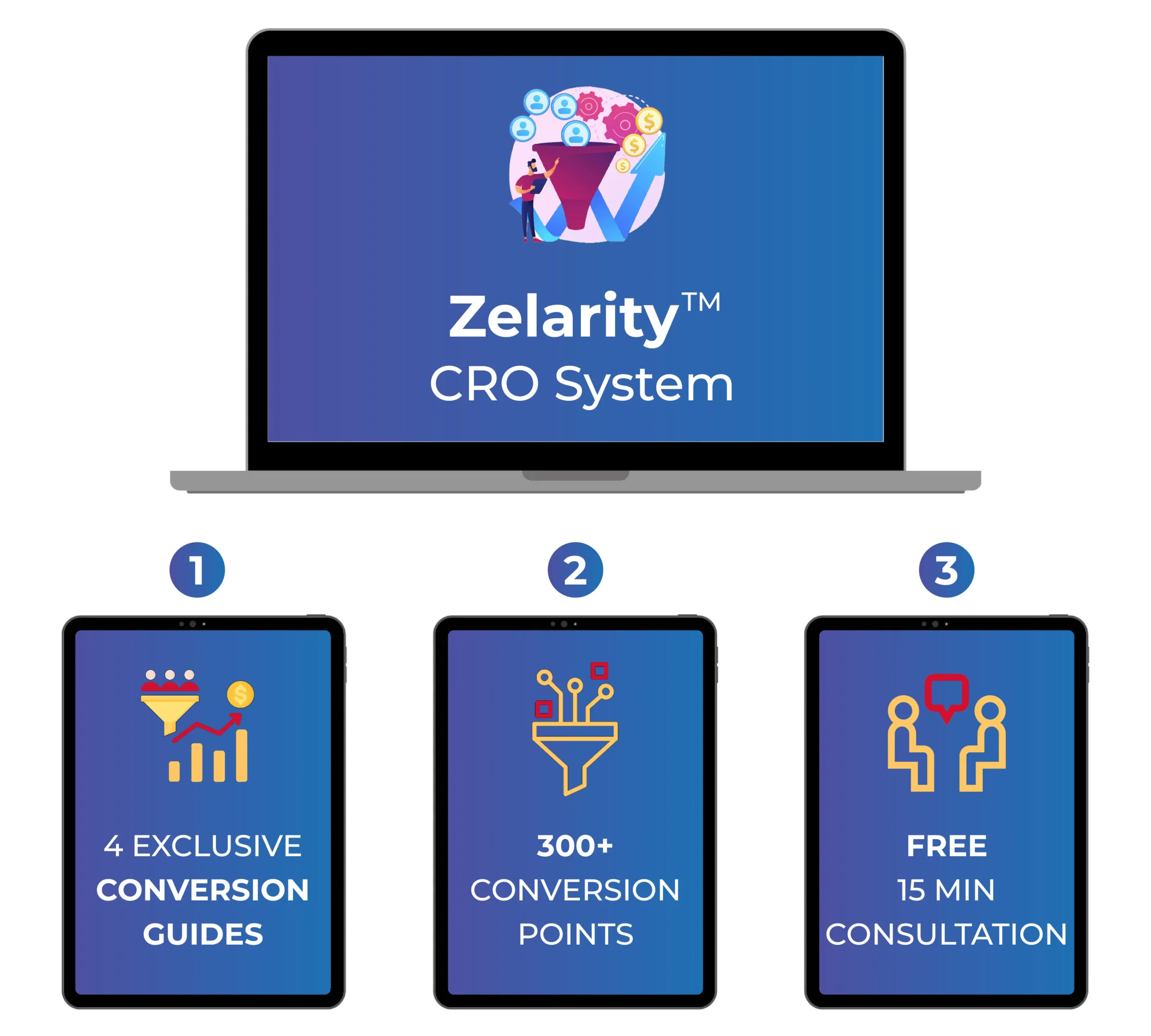 Most importantly—we deliver conversion-boosting results from DAY ONE. Now, you can replicate our entire Conversion Rate Optimization framework by grabbing this $27 CRO Checklist and learning the Zelarity™ System today!