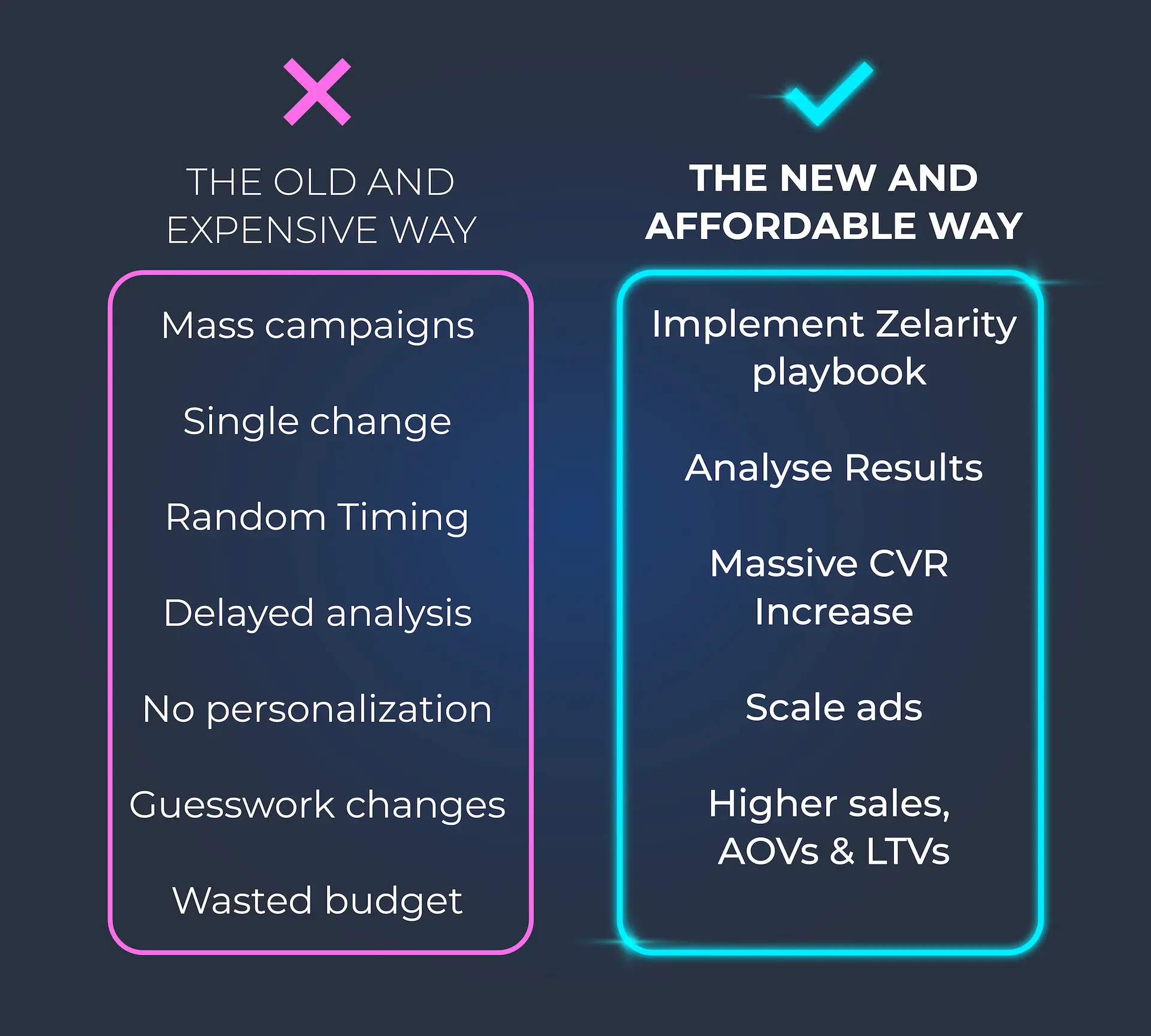 This frees you up to focus on scaling your business instead of guessing what converts—this is the Zelarity System!